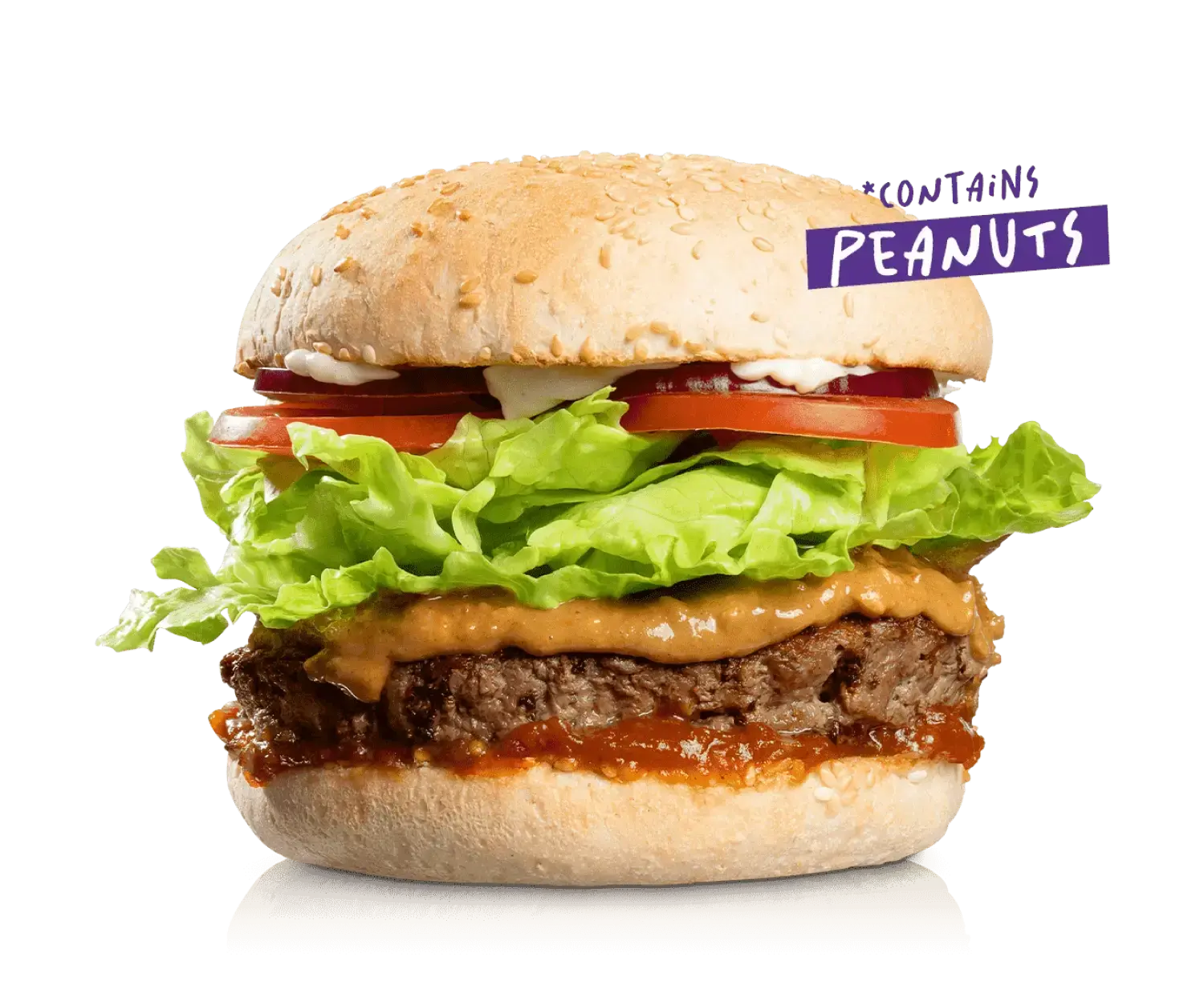 Featuring a grass-fed beef patty, smashed juicy for a caramelised finish and to lock in the delicious flavours, topped with a generous drizzle of rich, creamy peanut satay sauce, fresh salad, and our signature free range BurgerFuel Aioli. All on a lightly toasted artisan wholemeal bun with a spread of batch-brewed sweet tomato relish.