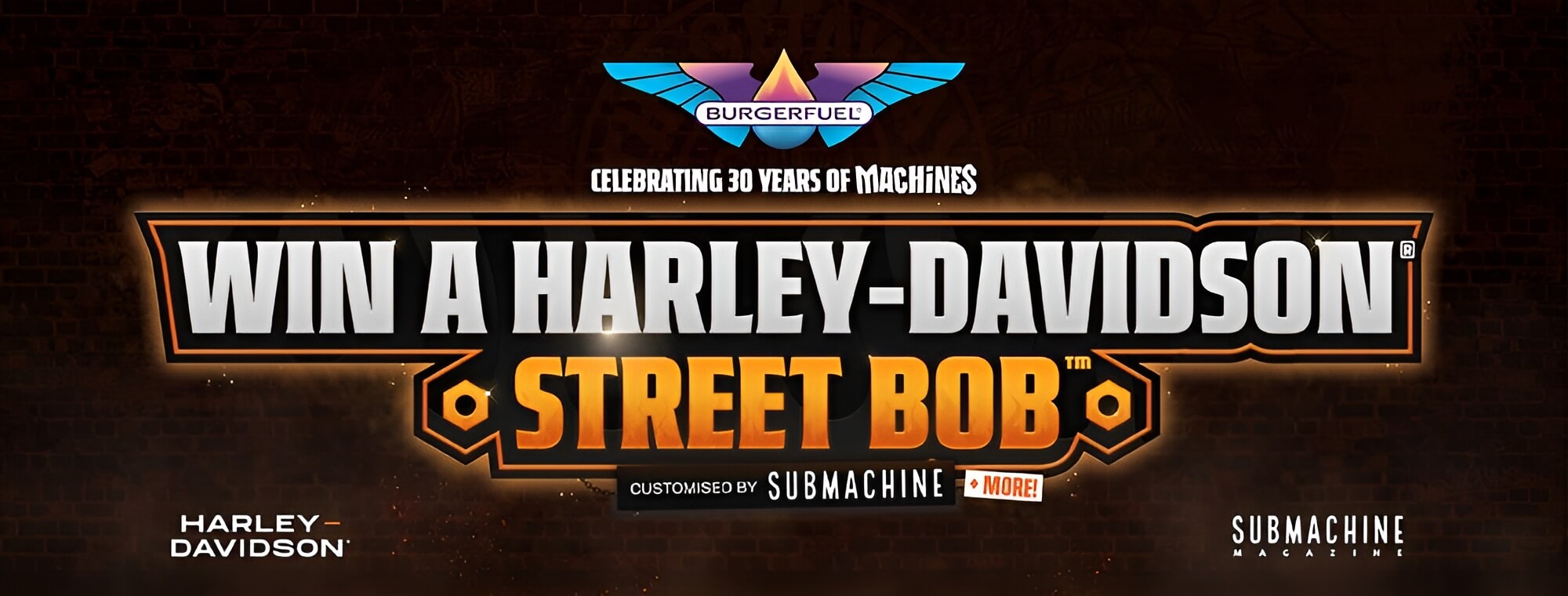 This October, when you buy any burger, you’ll get a delicious hook-up with your next visit and have the chance to enter the draw to win The Getaway: a Harley-Davidson®Street Bob™, fully customised by Submachine. Check out The Getaway here.