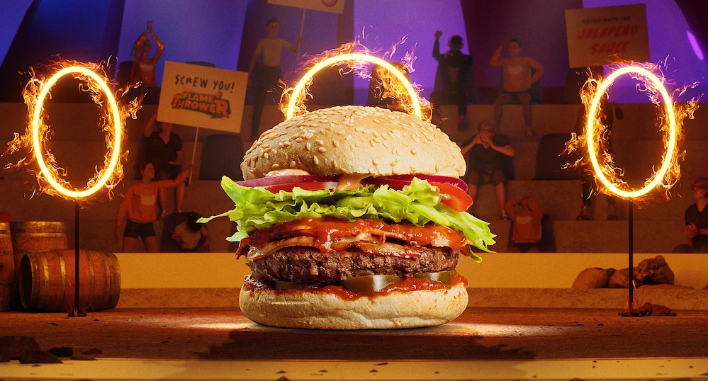 Two legendary burgers have emerged from the vault to settle the score, and they’re hotter than the time you tried to impress your mates by eating a whole jalapeño in one bite. It’s the Ring Burner versus the Flame Thrower, a battle you didn’t know you needed.