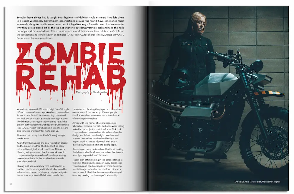 Al hopes readers will take a break from the digital world and the endless scroll, deliberately designing Submachine to be not just immersive and engrossing, sensory - printed on high quality stock, the magazine has a heavy, premium feel. “I hope people can sit down and take some time for themselves. Magazines are a physical, tactile experience”, Al says, “If it inspires someone to go and take a welding class, or get the camera out, or get on that bike that’s been sitting in the garage – my job’s done”.